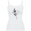 Camisola de alças finas de mulher. Detalhe nos ajustadores em plástico nas alças. Corte cintado com costuras laterais. Composição de 95% algodão / 5% elastano, ponto liso , 205 g/m².