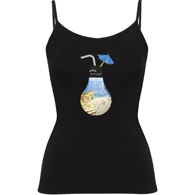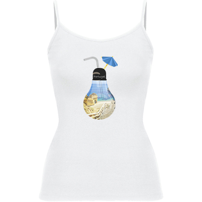 Camisola de alças finas de mulher. Detalhe nos ajustadores em plástico nas alças. Corte cintado com costuras laterais. Composição de 95% algodão / 5% elastano, ponto liso , 205 g/m².