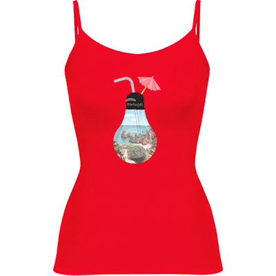 Camisola de alças finas de mulher. Detalhe nos ajustadores em plástico nas alças. Corte cintado com costuras laterais. Composição de 95% algodão / 5% elastano, ponto liso , 205 g/m².